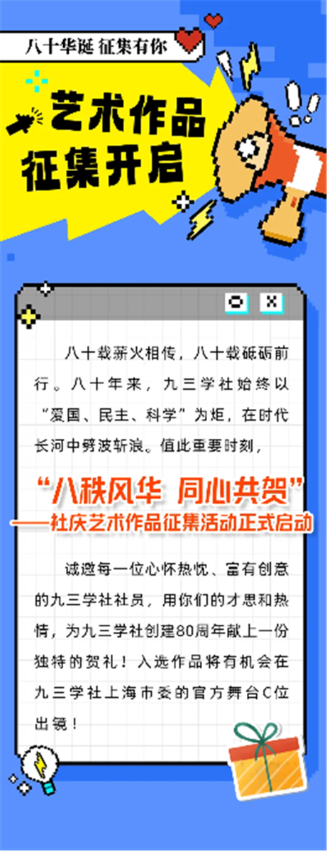主题鲜明:作品应紧扣九三学社八十华诞主题,突显九三学社上海组织特色,弘扬“爱国、民主、科学”优良传统,反映九三学社与时代同频共振的奋斗历程。