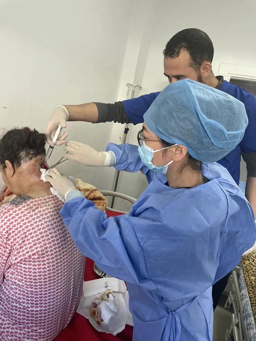在受援医院,于阅尽参与门、急诊、手术等常规医疗工作。在当地医院换药工作一般由护士负责,但对于病情较为特殊的患者,她常常亲自操刀上阵。