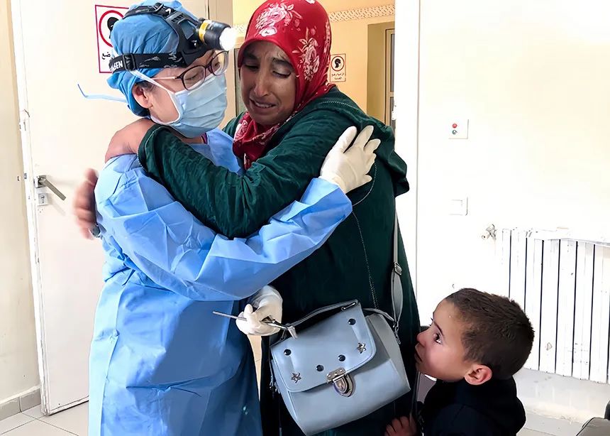 2022年12月,九三学社社员、中国援摩洛哥医疗队塔扎医疗分队队长、上海市第七人民医院耳鼻喉科副主任医师于阅尽,随第195批中国援摩洛哥医疗队赴摩洛哥开展为期两年的医疗援助。图为于阅尽(左一)和她的队友们。