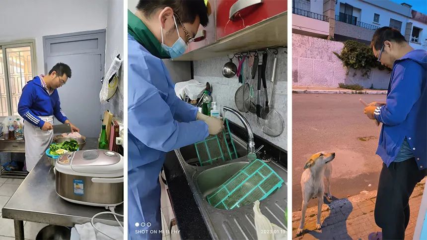 工作之余,做饭、逗狗、帮队友干杂活,这位来自中国的阳光开朗大男孩,过得颇为“滋润”。