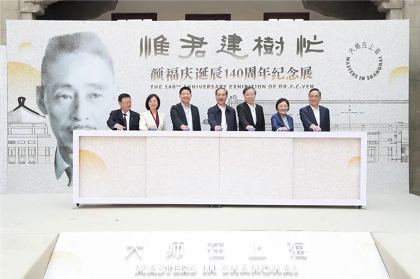 4月22日,由复旦大学、复旦大学上海医学院、解放日报·上观新闻和九三学社上海市委员会共同主办的“惟君建树忙”——颜福庆诞辰140周年纪念展正式揭幕。九三学社中央原主席、中国科学院院士韩启德致辞,并与九三学社中央常委、上海市委主委、上海市政协副主席、中国工程院院士钱锋,复旦大学党委书记裘新,中国工程院院士、复旦大学上海医学院教授闻玉梅,上海市委宣传部副部长马笑虹,复旦大学党委副书记、上海医学院党委书记袁正宏,九三学社徐汇区委原秘书长、颜福庆先生长孙、复旦大学上海医学院副教授颜志渊等共同为纪念展揭幕。