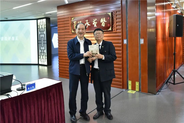 会上,颜志渊向韩启德赠送了他合著的《颜福庆传》。