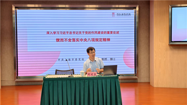 中共上海市委党校党的建设教研部副主任周建勇教授作题为《深入学习习近平关于作风建设重要论述,锲而不舍落实中央八项规定精神》的专题辅导。