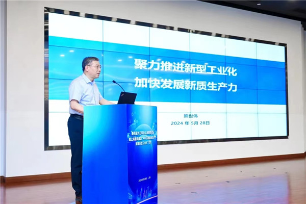 市经济和信息化委员会综合规划处处长熊世伟作题为《聚力推进新型工业化,加快发展新质生产力》的主旨报告,立足于全球经济正面临大变局时代、大科学时代、大转型时代的三大发展趋势,从技术逻辑、市场逻辑、治理逻辑三个层面,阐述了当前上海产业发展面临的挑战和机遇,并介绍上海当前在发展新质生产力、推进新型工业化方面的工作进展、工作布署和政策举措。