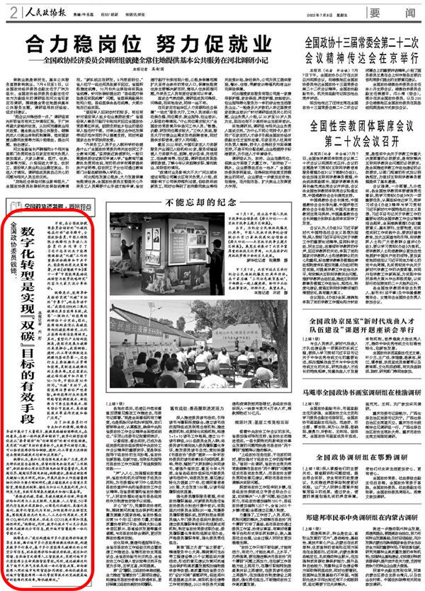 为了加深委员们对专业知识的理解,钱锋在导读中展示了大量图片、数据表格辅助阐释观点。在他看来,在新一轮科技革命驱动下,数字化转型能够促进从“要素驱动”向“创新驱动”的新旧动能转换,是实现“双碳”目标的重要抓手。走数字化转型之路,可以推动能源供给和钢铁、建材、化工等重点流程制造业领域低碳技术创新和应用推广。