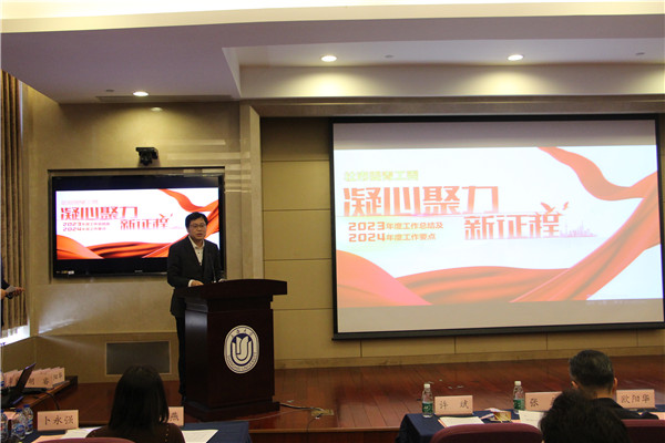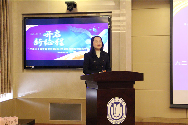 1月27日下午,九三学社上海市委青年工作委员会在上海大学举办2023年度总结表彰会暨迎新活动。上海大学党委副书记欧阳华,九三学社上海市委专职副主委李国娟,上海大学党委常委、统战部部长曹为民,九三学社上海市委副秘书长、参政议政部部长张磊,九三学社上海大学委员会主委许斌应邀出席会议。社市委青工委主任贺仁龙,副主任卜永强、丁军、刘健惠、郑路逸、翁丹燕,社上大委员会副主委徐韬等120余位青年社员参加会议。社市委青工委委员秦嘉玮主持总结表彰会,社奉贤区青工委委员何一舟、朱晓筠主持迎新活动。