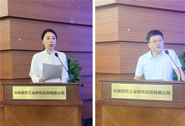 社市委青工委副主任、社中国医药工业研究总院支社副主委、上海现代制药营销有限公司副总经理刘健惠(左),社中国医药工业研究总院支社委员,上海医药工业研究院研究员胡晓(右)共同主持了论坛。