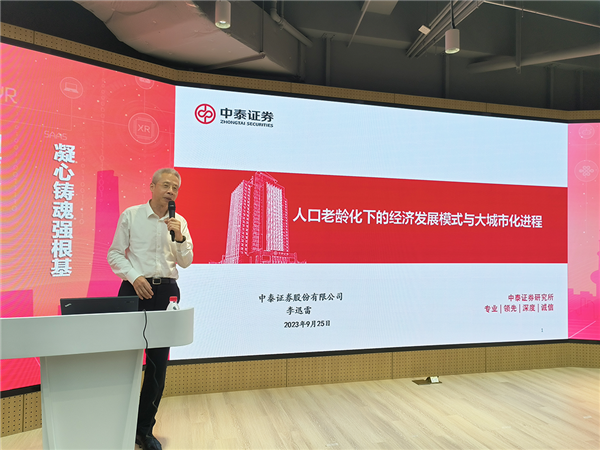 会议期间,李迅雷作了题为《人口老龄化下的经济发展模式与大城市化进程》的专题报告。他从产业结构和人口流向的角度出发,深入分析了人口老龄化对经济发展的影响以及大城市化进程的趋势。报告引起了在场委员的热烈讨论和深入思考。