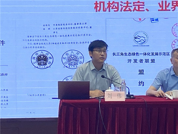 为推进“凝心铸魂强根基、团结奋进新征程”主题教育,引导各位委员学习领会习近平总书记关于长三角一体化发展的重要指示精神,更好为示范区生态绿色一体化高质量发展作出贡献,会议邀请长三角生态绿色一体化发展示范区执委会生态和规划建设部副部长刘伟以《长三角生态绿色一体化发展示范区探索和实践》为题作主题教育专题讲座,就示范区基本情况、核心使命、制度创新、重点实践以及“三生”一体发展情况等作了详细介绍。