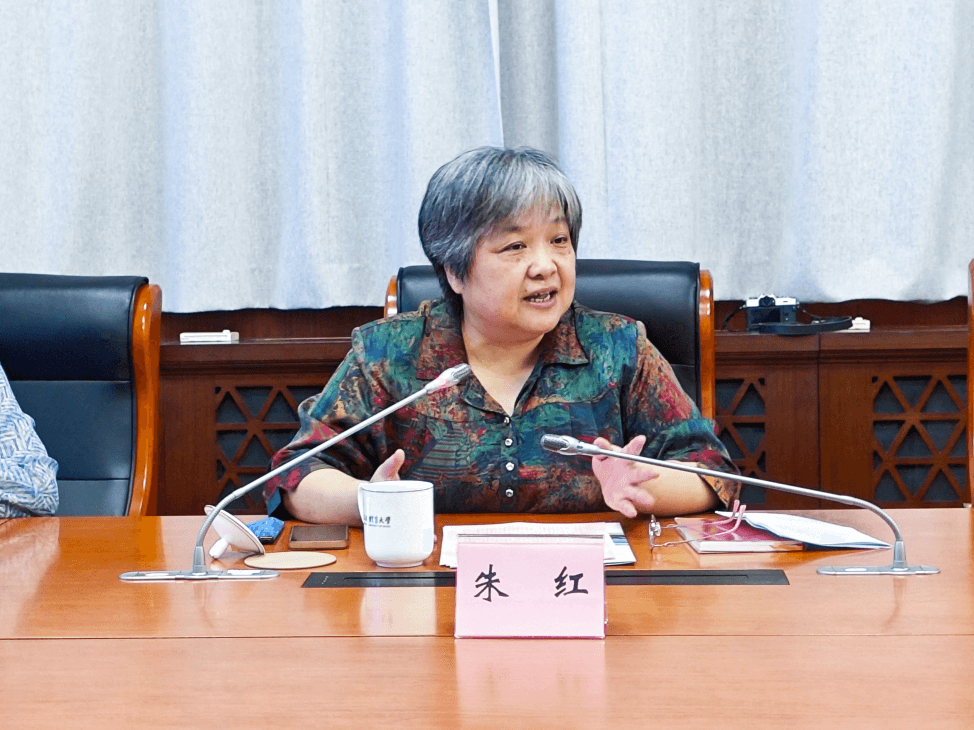 会前,朱红与上海体育大学组织部部长张盛进行了会面。(摄影:王洁、俞庆)