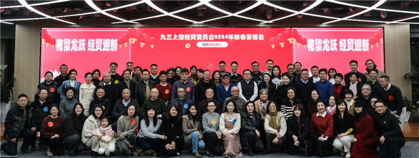 1月27日,九三学社上海经贸委员会2024年迎新春活动在黄浦区政务服务中心举行。九三学社上海市委秘书长朱红、上海市商务委员会人事处副处长薛雅晴、九三学社上海经贸委员会主委章伟民、经贸委原主委曹良和近90位社员参与此次活动。