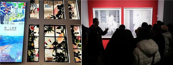 活动前,社员们参观了上海市东一美术馆内的金宇澄绘画展。