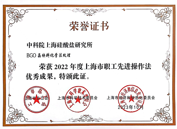 该技术成果荣获上海市总工会、上海市科学技术委员会、上海市经济和信息化委员会颁发的2022年度上海市职工先进操作法优秀成果奖励。