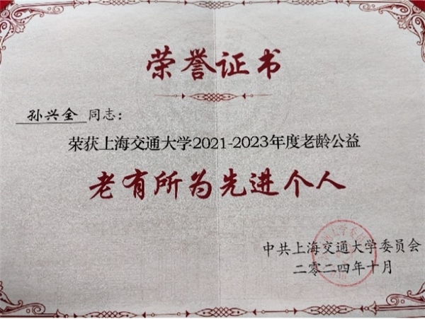 10月10日上午,上海交通大学庆祝敬老节暨2021-2023年度老龄公益先进集体和先进个人表彰大会在徐汇校区文治堂召开。九三学社上海交通大学委员会社员、上海交通大学农学院园林环境科学系副教授孙兴全荣获“老有所为先进个人”称号。