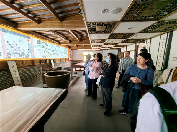 第三站“产业赋能”:中药饮片工作车间。社员们下到车间,现场感受科技进步给传统中医药产业带来的技术革新和产业赋能。直观的一线体验让每一位社员对中医药文化有了更加深刻的认识,切实提升了文化自信。同时,社员们围绕如何在日新月异的科技时代、守正创新助力中医药传承与发展、促进中医药产业高质量发展等话题展开了讨论,引发了更多思考。