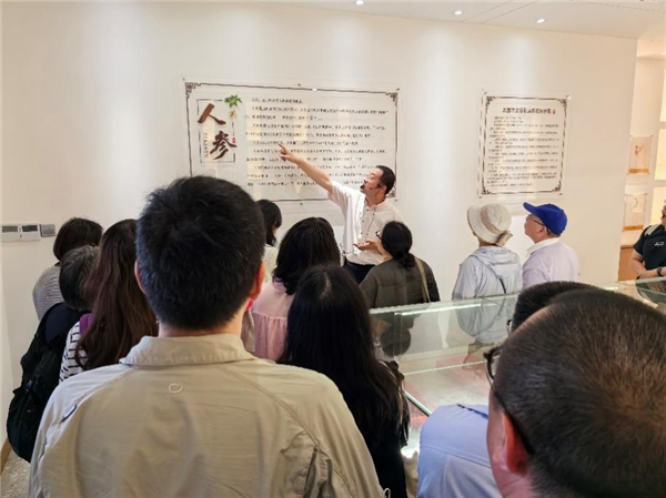 第二站“现场科普”:人参标本馆(陈军力工作室)。石云亲自为社员们科普了人参标本馆内收藏的数十种不同年份、不同品种的人参标本并结合自身多年行医实践,深入浅出地讲解了人参的药用历史、鉴别方法及其在现代医学中的应用,使大家对“百草之王”有了更深入的了解。
