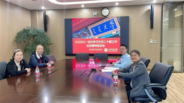 金秋十月,清风送爽。10月22日中午,九三学社上海交通大学委员会一支社于上海交通大学安泰管理学院集体学习中共二十届三中全会精神。一支社副主委荣正通、参政议政委员汪俪、宣传委员兼妇女工作委员孔维娜、社员姚卫平和金英参加会议。