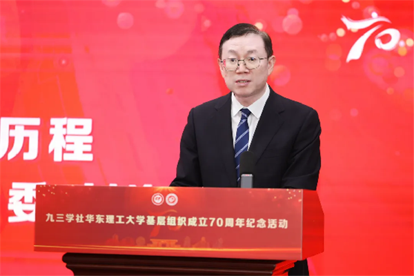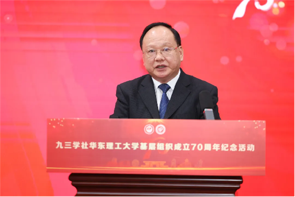蒋传海在致辞中指出,70年来,九三学社华东理工大学基层组织先后涌现出一大批对国家教育事业做出卓著功勋的老一辈杰出社员。近年来,广大社员立足三尺讲坛,潜心教书育人;大力弘扬科学家精神,聚焦“卡脖子”难题,勇攀高峰;认真履职尽责,积极参政议政;坚守社会责任,投身公益事业;围绕中心、服务大局,积极作为、建功立业,取得了一系列卓越成绩。希望九三学社华东理工大学委员会深入学习贯彻中共二十届三中全会精神和习近平总书记考察上海的重要讲话精神,全面落实全国教育大会精神,心怀“国之大者”,坚持“四个面向”,助力教育科技人才体制机制一体改革,共同推动学校事业高质量发展,为教育强国、科技强国、人才强国建设,推进中国式现代化作出新的贡献!