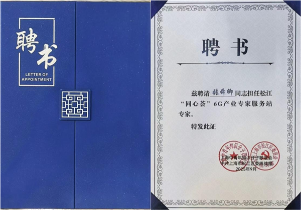 9月20日,上海大学人才工作办公室副主任、九三学社上海大学委员会委员张舜卿受邀参加“同心聚智慧 众志绘新篇”——2025年上海党外专家服务日活动,在主会场作主旨报告并受聘成为松江“同心荟”6G产业专家服务站专家。上海市委常委、统战部部长陈通出席主会场活动,上海市委统战部副部长张峰出席并颁发专家证书。