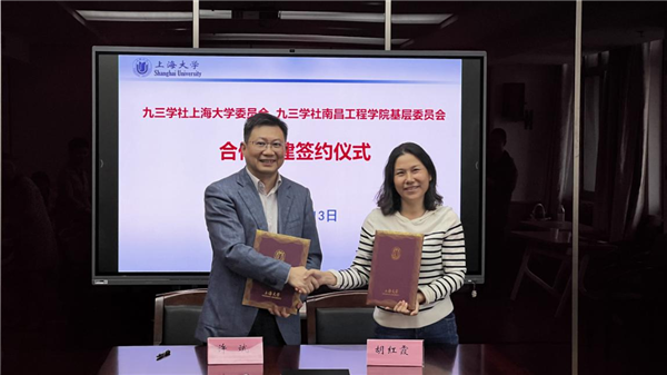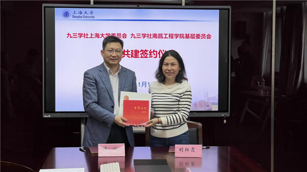 为深入学习贯彻习近平新时代中国特色社会主义思想和中共二十届三中全会精神,充分发挥沪赣两地科研、教学和人才优势,加强九三学社基层组织自身建设和交流共建,11月13日,九三学社南昌工程学院基层委员会主委胡红霞,委员会副主委梁兴、李贤及部分学科骨干教师等一行8人到访上海大学,与九三学社上海大学委员会就共同打造社际合作新模式进行调研,双方举行合作共建签约仪式。上海大学统战部副部长谭婷,九三学社上海市委常委、社上大委员会主委许斌,社上大委员会副主委李颖洁、尹静波,社上大委员会委员王爽,社员、南昌工程学院水利工程学院副院长(挂职)李世阳等出席活动。李颖洁主持签约仪式。