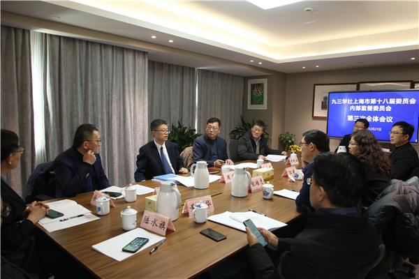 12月21日下午,九三学社上海市第十八届委员会内部监督委员会在上海民主党派大厦举行第三次全体会议。社市委专职副主委、内部监督委员会主任周锋主持会议,副主任徐大振、詹咏,委员方建安、江敏、张培志、杨建锋、陆水旗、徐滕岗、黄海华出席会议。