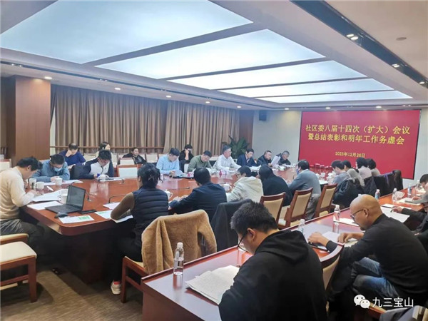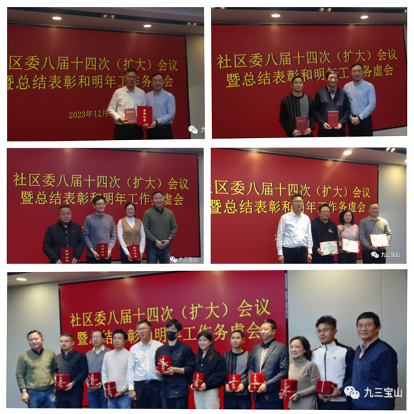 王培华传达了中共上海市委十二届四次全会精神、中共宝山区委《聚精会神抓发展,全力推进“北转型”》学习讨论会和九三学社上海市委十八届三次全会精神,从加强自身建设、履行参政党职能、积极服务社会和取得的成绩四个方面总结了社区委2023年度工作,宣读了《九三学社宝山区委关于2023年度先进集体和先进社员的表彰决定》,通报了近期社区委获得社市委组织工作先进集体、思想宣传工作先进集体,沈勇民和陈岗获得社市委思想宣传工作先进个人。