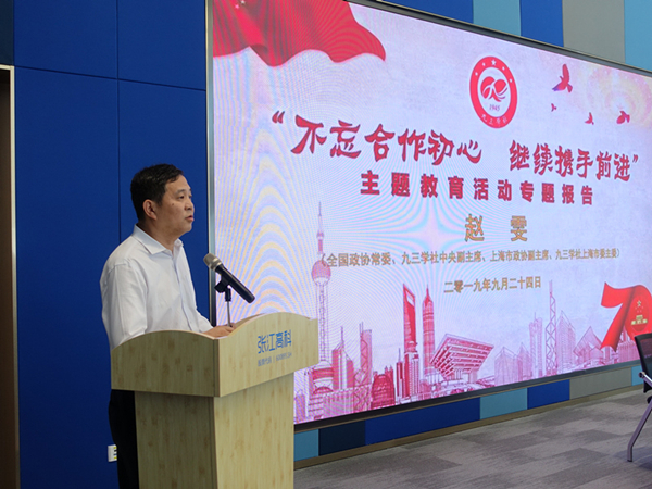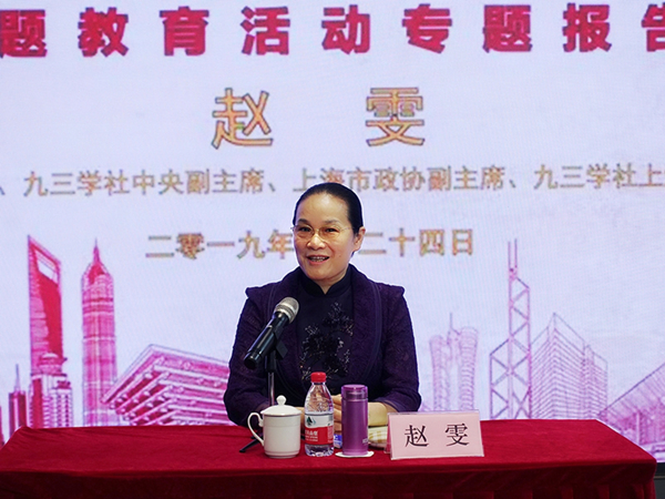 9月24日上午,九三学社中央副主席、上海市政协副主席、社市委主委赵雯专程赴浦东,为社员们做“不忘合作初心,继续携手前进”主题教育活动专题报告。社市委副主委周锋、钱锋出席,社浦东区委主委、浦东新区科经委主任唐石青主持会议。