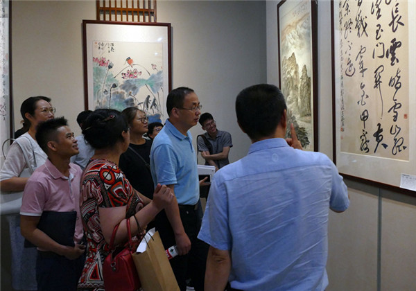 会后,与会人员集体参观了“同心颂祖国,翰墨绘彩蝶——青浦区民主党派、无党派人士书画作品展”。在这次书画作品展中,共有4位社员提交了9幅作品,受到了参观者的高度好评。