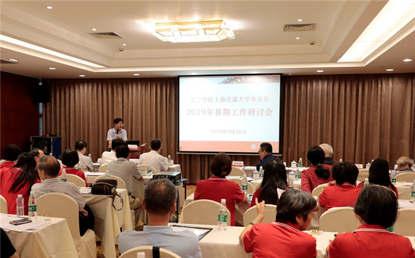 8月28日上午,九三学社上海交通大学委员会召开2019年暑期工作研讨会。社市委专职副主委周锋,上海交通大学党委常委、统战部部长张卫刚,社市委原副主委、社上海交通大学委员会原主委敬忠良,原社中央委员、社上海交通大学委员会原主委沈灏,社市委秘书长兼组织部部长詹咏,社上海交通大学委员会原主委助理王殿臣、吴东、徐勇江等受邀出席。会议由社市委副主委、社上海交通大学委员会主委刘成良主持,委员会副主委贾金锋、陈迪、傅正财、严亚贤、冯传良等10位委员会委员及近40位社员代表参加了会议。