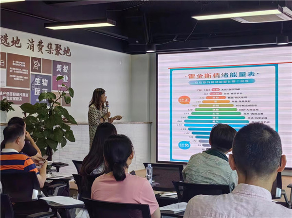 彭芬运用霍金斯情结能量表等从专业角度分析日常生活当中不同情绪所带来的生活压力并指导如何缓解压力、管理职场情绪、调适心理,有效提升整体幸福感。