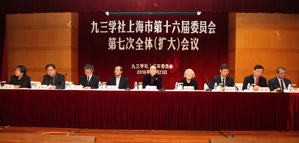 12月23日,九三学社上海市委召开十六届七次全体(扩大)会议,传达学习九三学社第十三届中央委员会第五次全体会议精神,审议九三学社上海市第十六届常委会2016年工作报告,审议通过关于召开九三学社上海市第十二次代表大会的决定。九三学社中央副主席、上海市副市长、社市委主委赵雯,中共上海市委统战部副部长戴晶斌出席并讲话。