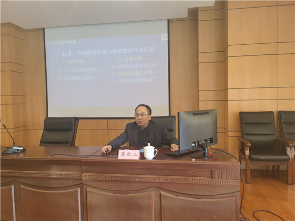 区政协地区指导委员会主任蒋红心从什么是社情民意、怎么写社情民意、如何写好社情民意三方面着手,结合自身实例,生动地介绍了社情民意工作。