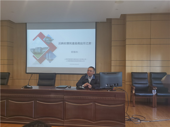 社员、上海联境建设集团有限公司董事长、教授级高级工程师曾朝杰结合自身专业,以《反映社情民意是我应尽之责》为题,从为什么要写社情民意,怎么写和如何提高质量等三方面与学员们进行了分享。他说,要尽可能去多关注有共性、有代表性的问题,这样信息才会更有价值、更有意义。