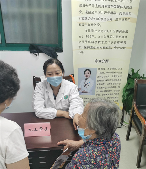 10月13日下午,社区委一支社副主委、上海市中西医结合医院副主任医师陆逸莹,以及一支社委员、上海市远东律师事务所合伙人、律师朱煜参加了在上海警备区第四离职干部休养所举办的此次活动。当天下午,两位专家为30余位社区老年人提供了中医和法律咨询等公益服务。
