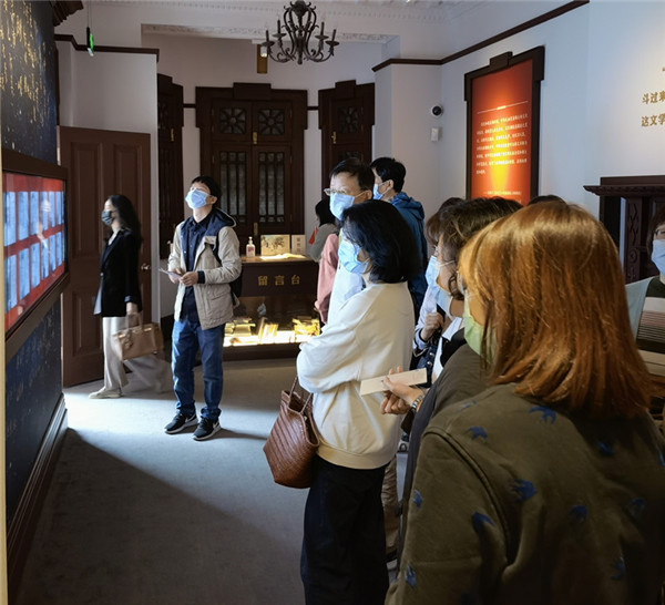 活动中,社员们首先参观了位于虹口区多伦路145号的中国左翼作家联盟成立大会会址纪念馆。“左联”的成立使得中国现代文学在“五四”新文化运动之后进入了一个新的发展阶段,培养出大批文学青年投身革命之中。《文学月报》《大众文艺》《拓荒者》,一本本先锋期刊,鲁迅、茅盾、丁玲,一位位响当当的作家,还有柔石、冯铿、殷夫等英雄烈士……馆内展品串联成一部鲜活生动的思想革命画卷,将中华民族独立自强的意志代代相传,融化在现代中华儿女的魂魄之中。