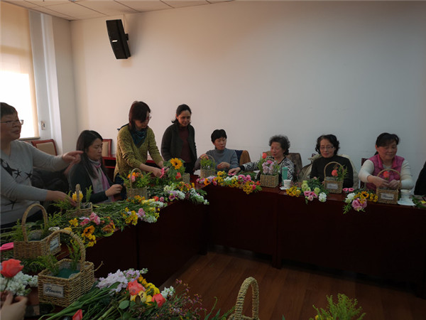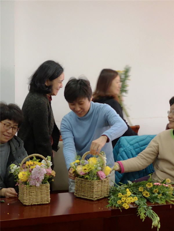 活动中,社员们在插花老师的悉心指导下,充分发挥各自的想象力和创造力,动手制作美丽的花篮,庆祝属于自己的节日。