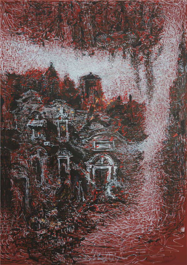 上海应用技术大学支社-林朝阳-硬笔绘画《都市峰岳》