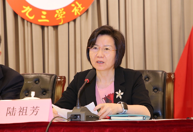 陆祖芳代表中共嘉定区委统战部向九三学社嘉定区第六届委员会表示祝贺,并希望新一届区委班子成员带领广大社员按照习近平总书记“四新”“三好”的总要求,进一步强化政治引领,凝聚思想共识;积极参政履职,共担时代使命;抓好自身建设,提升组织活力。