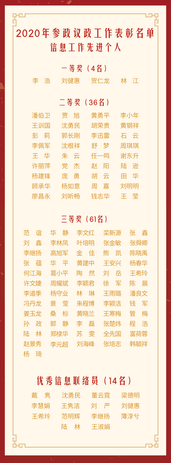 会上,副主委朱自强宣读了《关于表彰2020年度参政议政工作先进集体和个人的决定》,对46个参政议政工作先进集体、73项优秀调研成果、38个信息工作先进集体、101位信息工作先进个人和14位优秀信息联络员进行了表彰。会上向获奖组织和个人进行了颁奖。