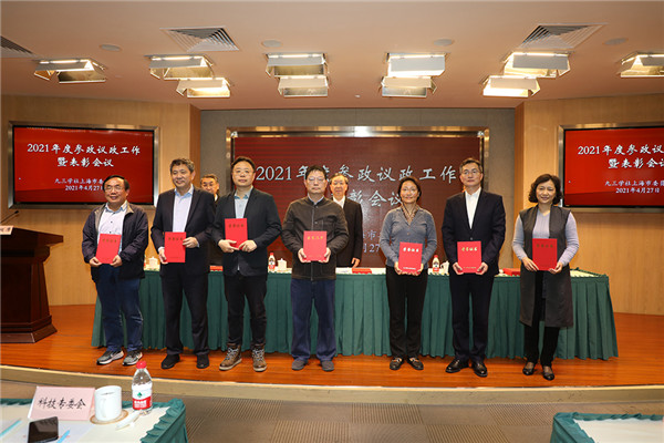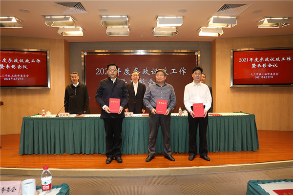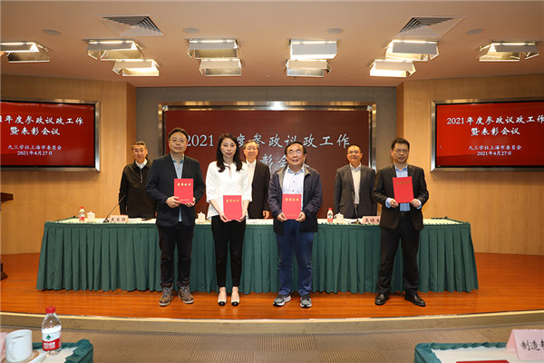 4月27日下午,九三学社上海市委在民主党派大厦召开2021年度参政议政工作暨表彰会议,对2020年度参政议政工作先进集体和个人进行表彰。社市委主委钱锋到会讲话,副主委吴健生主持会议。