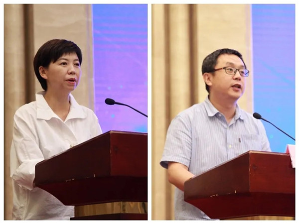 菊园新区党工委副书记、管委会主任汤艳(左)和九三学社中科院上海光机所支社主委魏荣(右)分别代表结对单位、在嘉定的市属九三学社组织做了发言。