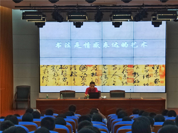 5月16日下午,大讲堂第二讲在嘉定区戬浜学校开讲,社员、讲师团成员、上海佼君文化艺术总监姚强为约160名学生做题为《书法是情感表达的艺术》主题报告。
