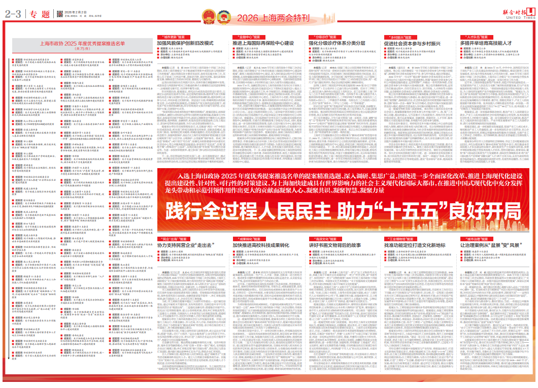 2月2日,《联合时报》刊登部分入选上海市政协2025年度优秀提案。让我们一起聚焦上海市政协常委、九三学社上海市委秘书长张磊及其他7位委员《关于践行人民城市理念,进一步提升基层治理效能的提案》的精彩内容!