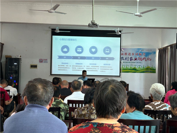 5月23日、24日下午,社内专家们不顾上午门诊的疲劳,早早驱车来到会场。从方泓的《春季预防反复呼吸道感染》到韩宁的《出现运动损伤的急救、干预及治疗方案》,从郑治渊的《高血压防治,贵在坚持》到李超的《降压药,让您的生活更轻松》,社内医学专家们为四个村镇的听众奉献了一场场精彩的科普报告,他们用专业靠谱的学识与浅显易懂的讲解,指导村民们通过中医穴位、食药同源疗法等治疗反复呼吸道疾病,帮助大家在出现运动损伤时第一时间急救干预,同时学会更好地防治高血压等疾病。