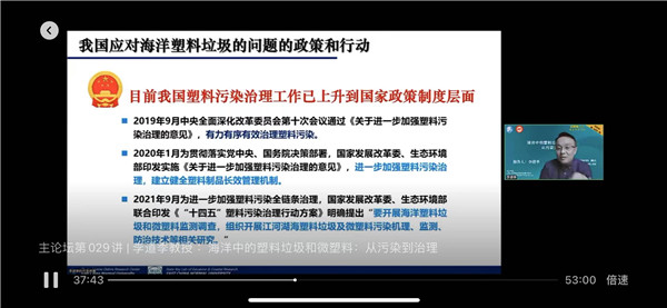 作为生物海洋学、河口及近岸海域生态与环境研究领域的资深专家,社中央资源环境专委会副主任、上海市委教育专委会主任,华东师范大学河口海岸学国家重点实验室教授,华东师范大学塑料循环与创新研究院院长李道季在第29期“海上科普讲坛”主论坛上的报告,将关切的目光投向辽阔的海洋。在题为《海洋中的塑料和微塑料:从污染到治理》的报告中,李道季对全球海洋塑料污染现状及其生态风险展开了深入的分析阐释,并回顾了国内外对河口和海洋塑料和微塑料垃圾研究和治理的历程,分享了自身参与相关工作的经验体会。