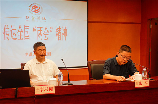 6月11日下午,中共黄浦区委统战部、九三学社黄浦区委、黄浦区社会主义学院联合举办黄浦区统战系统“联合讲坛”报告会,邀请全国政协委员、社市委常委、上海社会科学院历史研究所所长郭长刚传达全国两会精神。社区委主委朱弘主持报告会,社区委各支社社员同区其他统一战线成员170余人参加了会议。