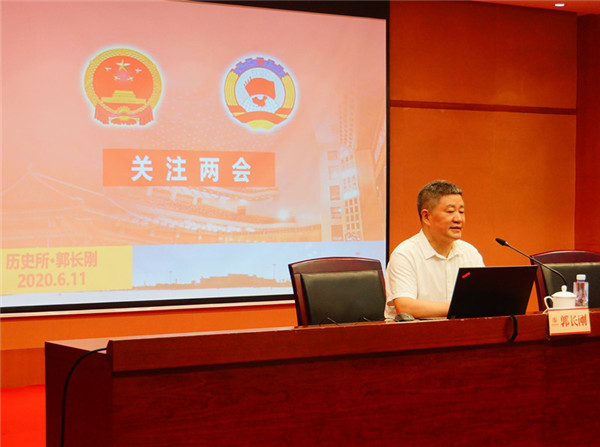 报告会上,郭长刚从“中国特色的民主形式”“人民至上”“放水养鱼”“留得青山,赢得未来”“命运共同体”等一系列全国两会“热词”入手,深刻解读了本次在中国决胜全面建成小康社会、决战脱贫攻坚之年、“十三五”规划收官之年的关键时期召开的两会的里程碑意义。