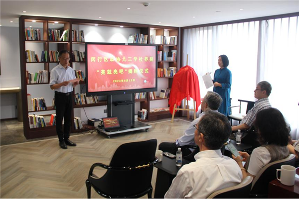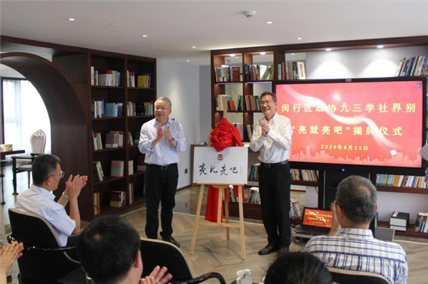 8月13日下午,闵行区政协九三学社界别“亮就亮吧”揭牌仪式在社区委“社员之家”隆重举行。闵行区政协主席祝学军,九三学社上海市委专职副主委詹咏,闵行区政协秘书长韩朝阳,区政协常委、九三学社闵行区委主委龚明红,上海市作家协会原副主席、党组书记、著名作家孙颙等出席活动。区政协机关相关领导及九三学社界别区政协委员等20余人参加活动。本次活动由社市委文化专委会主任、SMG融媒体中心主持人刘凝主持。