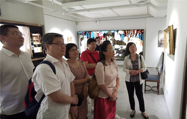会后,社区委一行还参观了陈伟德玻璃艺术工作室。区政协委员彭阳热情接待,并在展室做艺术玻璃专题普及讲座。