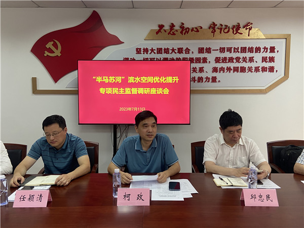为扎实开展中共普陀区委委托的关于“半马苏河”滨水空间优化提升工作的专项民主监督,7月13日下午,九三学社普陀区委监督工作组召开专题调研会,区建管委、区文旅局、区绿化市容局分管领导及相关科室负责人受邀出席。会议由社区委主委柯政主持,副主委邱忠民、任颖清,委员陈峰、陆地等监督工作组成员参加。